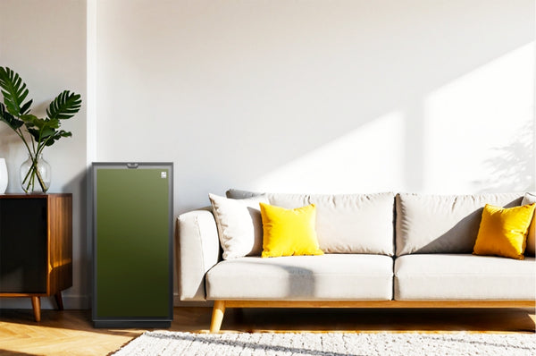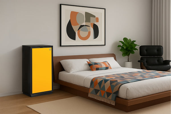 空間を魅せる存在感は、正に隠す金庫ではなく、『大切な物を美しく護る』最上級クラスの金庫。ハイテクなメタル技術による美しい直線ラインと6色のフロントカラーはラグジュアリーな空間を多彩に演出。金庫上部には、強化ガラス面のタッチパネルと指紋認証式センサーを装備しています。