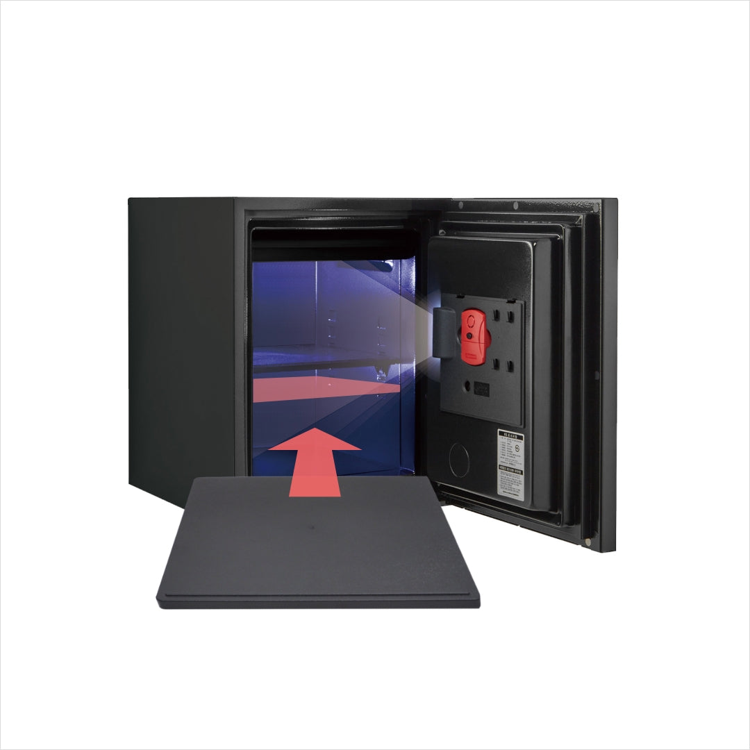 金庫の中に取り付ける追加棚板です。細かく仕切りたい時、収納力をUPさせたい時にご使用下さい。